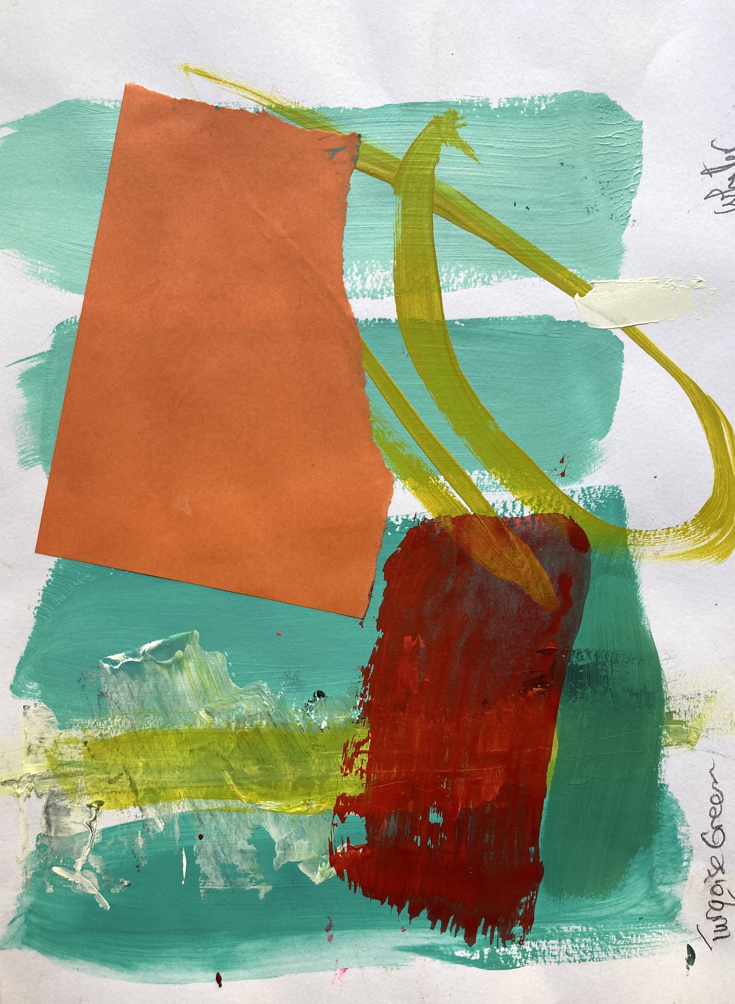 12” x 9” mixed media on paper, matted. 14” x 11” matted size. Can also be sold framed for $225.